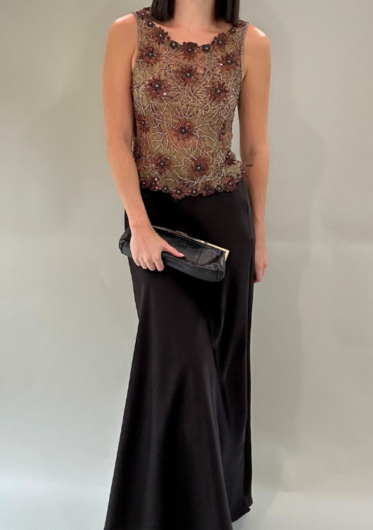 Sold outVintage Brown Beaded Silk Sheer Top