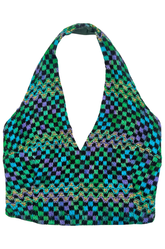 Vintage 1970s Retro Checkered Halter Top