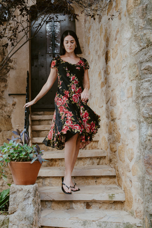 Vintage Floral Printed Flare Midi Dress