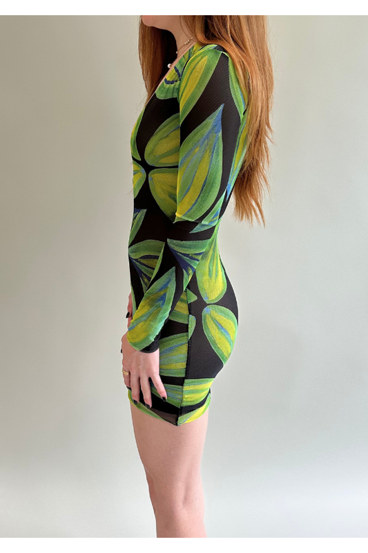 Louisa Ballou Tropical Plunge Jersey Mini Dress