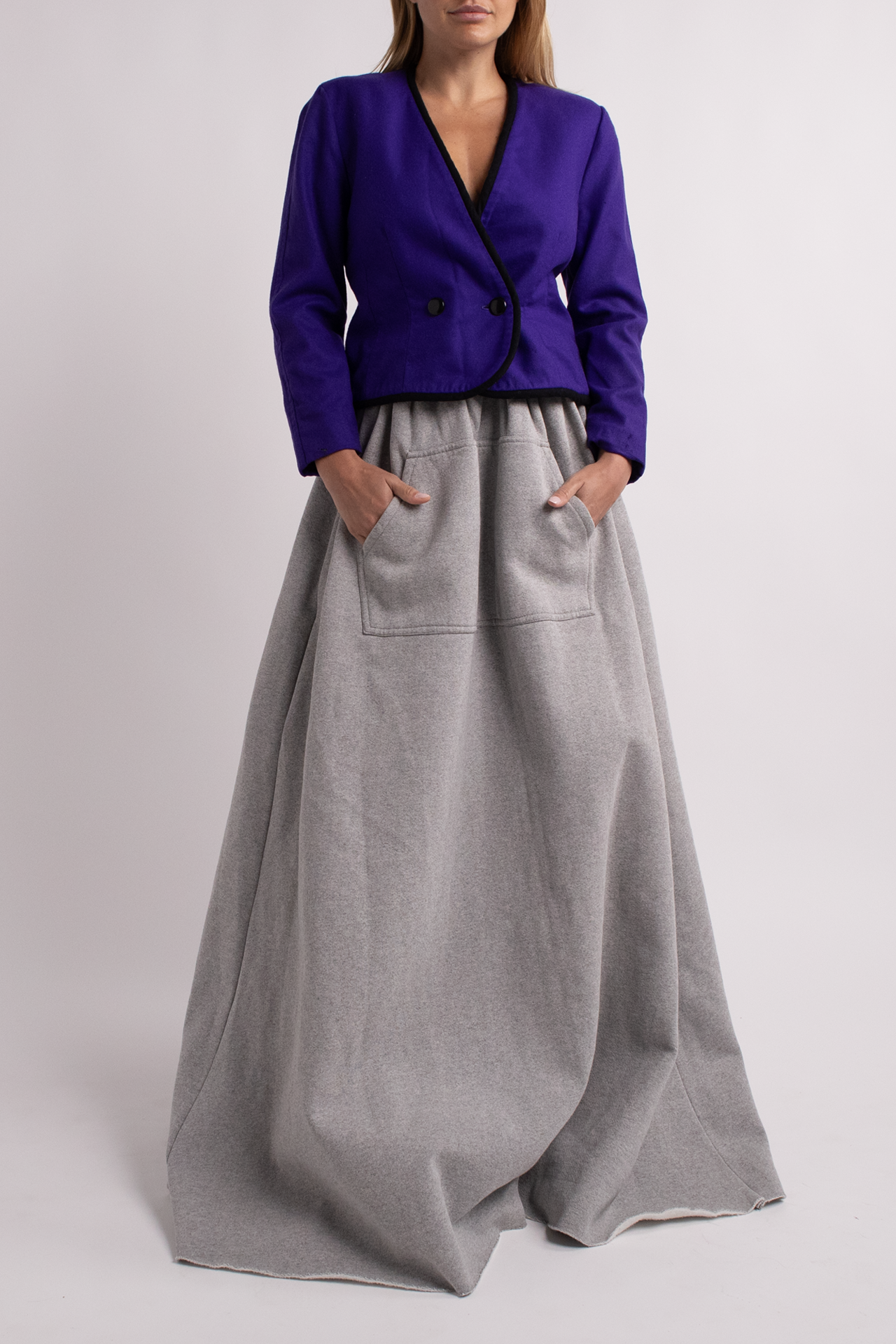 This ultra-comfortable jersey knit maxi skirt is the perfect blend of style and ease. Featuring a relaxed fit, drawstring tie at the waist, and convenient pockets, it’s designed for everyday wear. Plus, its customizable length allows you to cut it to your desired fit, making it as versatile as it is chic. Ideal for lounging or casual outings.